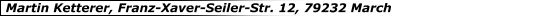 Ihr erreicht mich wie immer telefonisch unter 07665-95748. Natürlich freuen wir uns auch über eine E-Mail von Ihnen, die Sie an diese Adresse senden können: martin@famkett.de